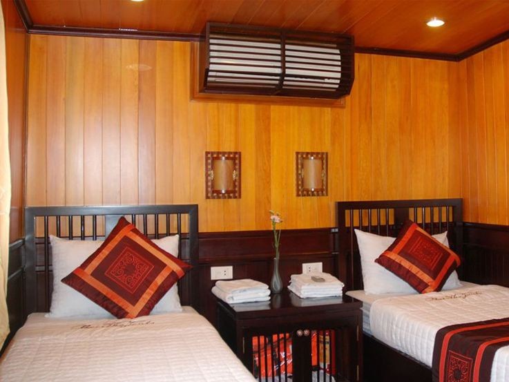The poetic appearance and smooth sailing of the Bai Tho Junk are evidenced in its name (Bai Tho means ‘poem’ in Vietnamese), but much better felt on a cruise through the ancient land of Bai Tu Long Bay. Through taking an alternative route through the Gulf of Tonkin, the Bai Tho Junk passes the benefits of its quieter location to you – giving you a chance to soak up all of its wonders from one of the best of Bai Tu Long Bay’s budget cruises. With just 10 cabins on board, you can be assured of a private and contemplative experience throughout the cruise, with a fantastic team of staff that run the line between attentive and overbearing.