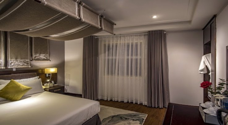 Oak frames lead the way as visitors head to their rooms, creating a visually rhythmic path with each step. The rooms are designed to be both cozy and roomy, but they are also very friendly. Like the hospitality shown by the Vietnamese people to their respected guests, each bed has long drapes with lotus embroidery draped over it to make guests feel especially valued.