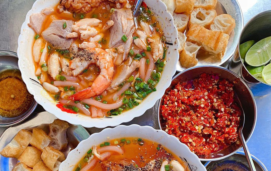 Basically “Banh canh” is a Vietnamese version of udon with thicker noodles made of tapioca flour or rice flour or a mix of those two types and “cua” in this dish means crab. Therefore, “Banh canh cua” is a crab soup with thick noodles. You will never have another chance to taste soft and fresh crab this delicious, this cheap in other places. In fact, the crab-based dishes are very common in Vietnam but the best place to try “Banh canh cua” is definitely Ho Chi Minh City. This meal will satisfy those who like their food to be flavorful and tasty. One of the best places in Ho Chi Minh City to eat “Banh canh cua” is at 80/68 Tran Quang Dieu street, District 3, Ho Chi Minh City.