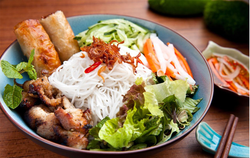 “Bun thit nuong” is very famous in Ho Chi Minh City and can be found throughout the city. Unlike the similar version of “Bun cha” in Hanoi, “Bun thit nuong” is a cooled dish so it’s perfect for Ho Chi Minh City sweating weather. It includes all the tastes and textures you would expect for a happy lunch in just one bowl of noodle. “Bun thit nuong” is normally served with vermicelli noodles, grilled pork, spring rolls, fresh lettuce, and fish sauce. When eating, you will need to pour the sauce over those ingredients, add some chili, and let the rich flavor mix to bring a perfect dish. There are many famous restaurants and places in Ho Chi Minh City to eat “Bun Thit Nuong” but one of the best places is Bun Thit Nuong Chi Tuyen, District 1. They used to be a small food stall in Co Giang street and has been developing strong through the decades. Coming here, you will see they barbecue the pork continuously in front of the restaurant and smell the grilled pork from hundred meters away.