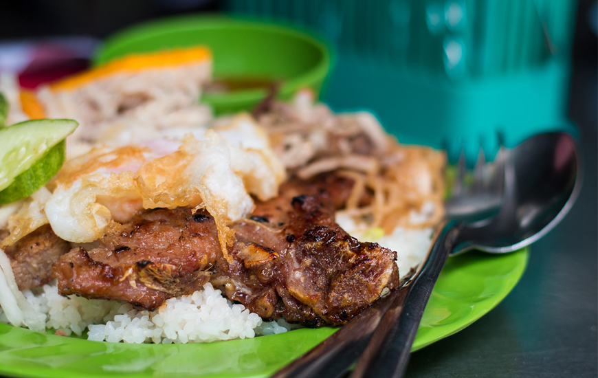 Among the dishes mentioned above, “Com tam” is one of the most famous dishes and is considered the iconic rice dish of Saigon. It is a rice dish served with smoky grilled pork chop, vegetables, egg, meatball, shredded pork skin, and pickles. Especially, the rice used in this dish is “broken rice” which is cracked rice grains.