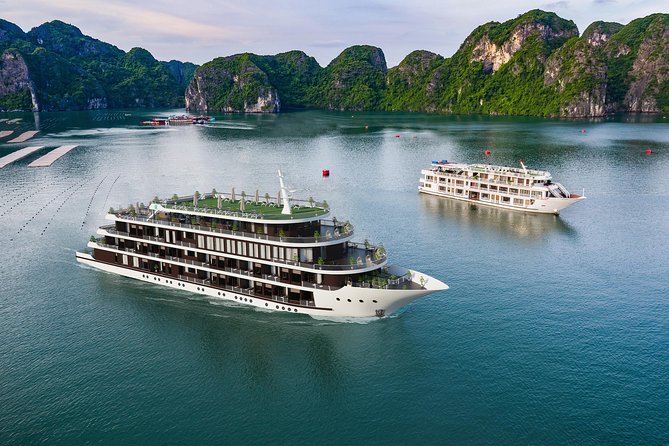 Dynasty Legend Cruise is a 5-star luxury cruise in Bai Tu Long Bay, Halong Bay, featuring an elegant design that blends modern and traditional styles. With 32 cabins, each equipped with modern amenities, private balconies, and sea views, the cruise offers premium facilities and excellent customer service. The cruise also provides 5-star quality services like a restaurant, spa, massage, and bar, all served by excellent crew members. Experience an authentic, impressive, and unforgettable adventure at the World Heritage Site.