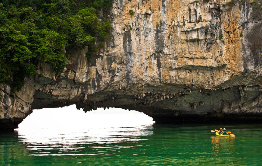 If you don't know how to kayak, you can sit on a boat rowed by locals to explore inside the Dark and Bright Caves.
