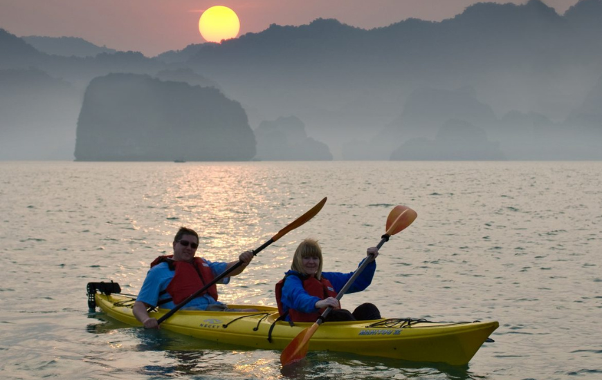 Many people when coming to Halong Bay always wonder, should they go to Bai Tu Long Bay or Lan Ha Bay?. Perhaps this is not too difficult to compare when Lan Ha Bay has undiscovered places in northern Vietnam. One of the popular activities in this Lan Ha Bay 3 Days 2 Nights Tour is dock at Viet Hai Village, take a walk around to admire the view of ancient houses, trekking through rainforests in the early morning and ride a bicycles to explore the beauty of Viet Hai. Not only that, we will have time for tranquil at Ba Ham Lake, where is quiet and peachful area. We will explore the lovely location, surrounded by cliffs streaked with color and tunnels through the rock below, by kayaking and swimming. At 5:30, you will have a sunset party, enjoy drinking and playing board games. At midday the next day, we reach to Harbour and turn back to Hanoi.