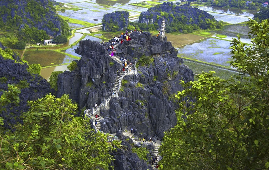 On the way to Hang Mua Peak, you will have the opportunity to fully delight in the charming but sacred nature complex such as Trang An, Tam Coc - Bich Dong. All of them are famous tourist attractions of Ninh Binh. If you are not in a hurry, visit these places which undeniably help you discover the whole fascinating beauty of Ninh Binh.