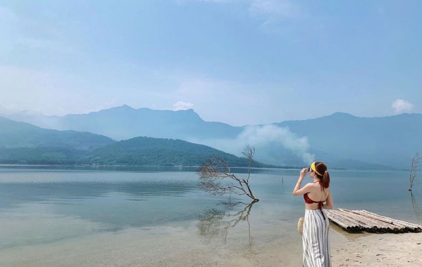 Lap An Lagoon, located between Bach Ma National Park and Lang Co Bay, is a beautiful lake with turquoise water and is surrounded by the impressive Bach Ma mountain range. Its blackish water blends fresh and salty water, reflecting the sky in the sunset. The lagoon is surrounded by the Bach Ma mountain range and is a popular spot for fishing with local fishermen. The airy, peaceful space provides an opportunity to unwind from a hectic life and enjoy the peaceful surroundings. Visit the lagoon and observe local fishermen's tiny boats floating. Enjoy a peaceful atmosphere while fishing with locals, helping unwind from a hectic life.