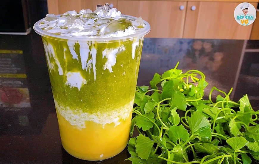 Usually Pennywort is often made salad or sun-dried to make Pennywort tea. But with this dish, people grind pennywort with filtered water, so it has a very eye-catching green color, and you can feel cool even though you haven’t drunk it. You can order plain pennywort, or pennywort with green beans which is always the most popular recipe. If combined with green beans, pennywort juice will be easier to drink because the taste will be sweeter and more flavorful. The color will now be more opaque like milk. Besides, Pennywort with coconut milk and Pennywort flavored with taro are also very popular.